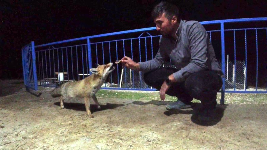 Okul müdürü dostluk kurduğu tilkiyi eliyle besliyor