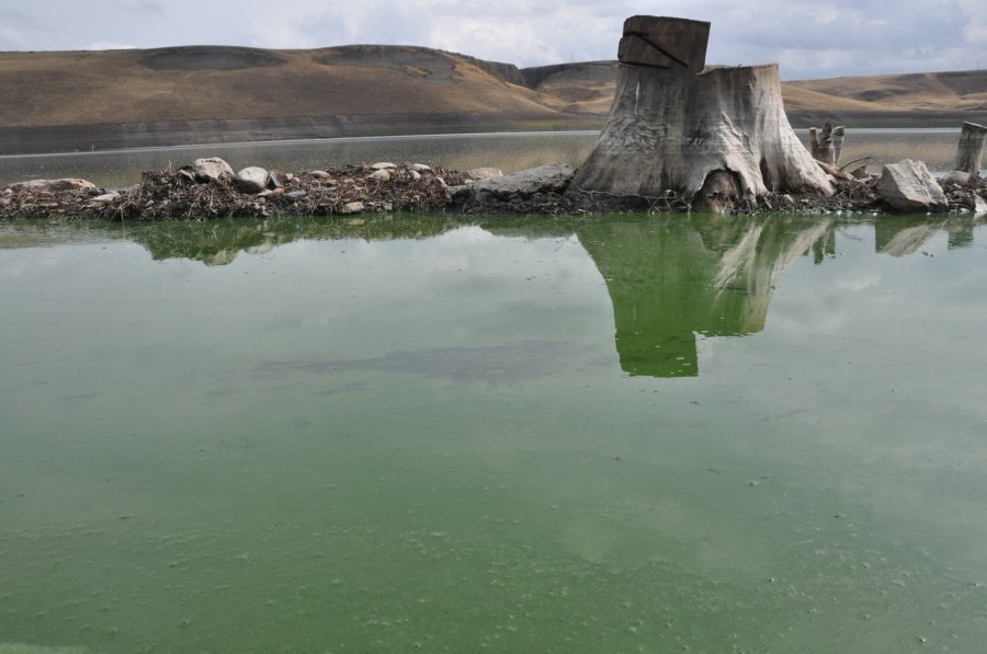 Kars Baraj Gölü yeşile büründü, etrafa pis kokular yayıldı