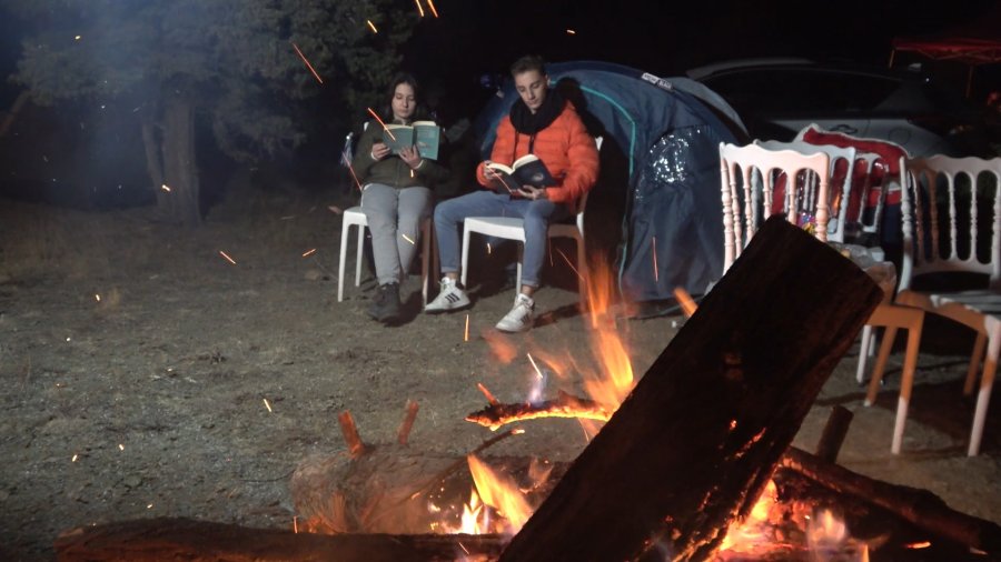 Kamp ateşinin etrafında kitap okuyup, arabalı sinemada film izlediler