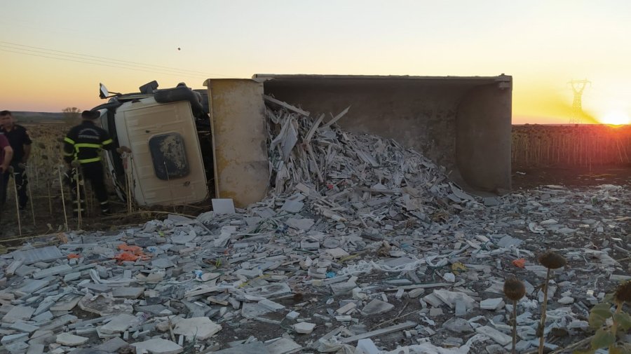 Kamyon kabininde sıkışan sürücüyü itfaiye ekipleri kurtardı