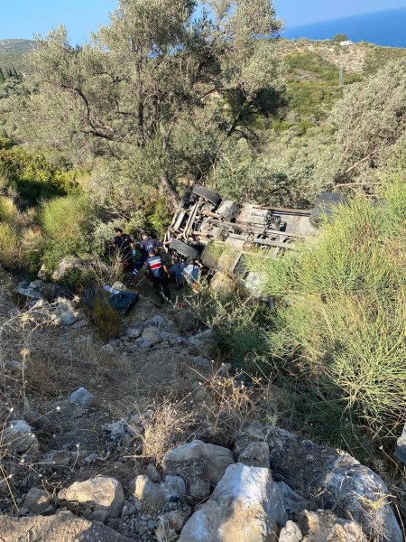 İzmir’de şarampole devrilen kamyonun sürücüsü ağır yaralandı