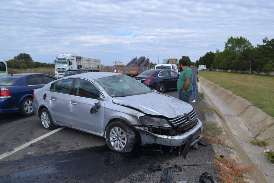 Bariyerlere çarpan otomobil takla attı , burunları bile kanamadı