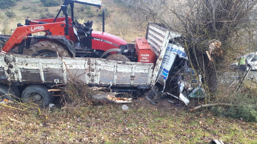 Traktör ile tır çarpıştı, buğday çuvalları yola saçıldı