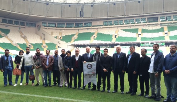 Suudi Arabistan ve Katarlı 22 kişilik heyet, Bursaspor’un yeni stadyumu Timsah Arena’da yeşil-beyazlı idareciler ile bir araya geldi. Bursaspor Başkanı Ali Ay, "Stadımızı göstereceğiz. İsim hakkıyla ilgili konuşacağız. Olması önemli değil ama önemli olan stadımızı Arap ülkelerinde tanıtabilmek" dedi. Bursaspor, geçtiğimiz sezonun ikinci yarısı itibariyle maçlarını oynamaya başladığı yeni stadyumu Timsah Arena’nın isim hakkının satılması için çalışmalarını sürdürüyor. Bu doğrultuda Katarlı ve Suudi Arabistanlı iş adamlarından oluşan 22 kişilik heyet, Bursa’ya gelerek stadyumda incelemelerde bulundu. Bursaspor Başkanı Ali Ay, İkinci Başkan Ali Ademoğlu ve yönetim kurulu üyelerinin de yer aldığı ziyarette açıklamalarda bulunan Başkan Ali Ay, "Güzel dostluklar kurduk, bizim için başlangıç oldu. Biz her şeyden önce Bursaspor’un kalkınması için çalışıyoruz. Bursaspor’u dünya markası yapmak için uğraş veriyoruz. Bursaspor’un ürünlerini satmak için uğraşıyoruz. Stadımızı göstereceğiz. İsim hakkıyla ilgili konuşacağız. Olur, olmaz o önemli değil ama önemli olan stadımızı Arap ülkelerinde tanıtabilmek" dedi.HÜSEYİN KIRK: "BURSA’YA BURSASPOR’UN DESTEĞİ BÜYÜK OLACAK"Ortadoğu Turizm ve Seyahat Acentaları Derneği (OTSAD) Başkanı Hüseyin Kırk ise, "Bursa’ya Bursaspor’un desteği büyük olacak. İlk ayağını biz Bursaspor - Al-Ittihad takımı ile yaptık ve çok büyük ses getirdi. Pazar günü Fenerbahçe’nin Topuk Yaylası Tesisleri’nde öğleden sonra bir yemeğimiz olacak. Fatih Hocamızla da bir görüşme yapmıştık. Orta Doğu’ya da çok iyi baktığını ve bize destek olduğunu söyledi. Haziran 2017’de Katar ve Türk Milli Takımı’nın hazırlık maçı için çalışmalarımız var" diye konuştu.ALLAWAMA: "BÜYÜK FUTBOL TAKIMLARINI BURAYA GETİRMEYE ÇALIŞIYORUZ"Dubai’deki bir spor organizasyonu şirketinin müdürü Ratep Allawama da, "Orta doğudaki takımlarla ve Bursaspor ile birlikte çok önemli organizasyonlar yapmak istiyoruz. Büyük futbol takımlarını buraya getirmeye çalışıyoruz. İnşallah hep birlikte Bursaspor ile entegre oluruz ve turizme yararımız olur" dedi. (İHA)