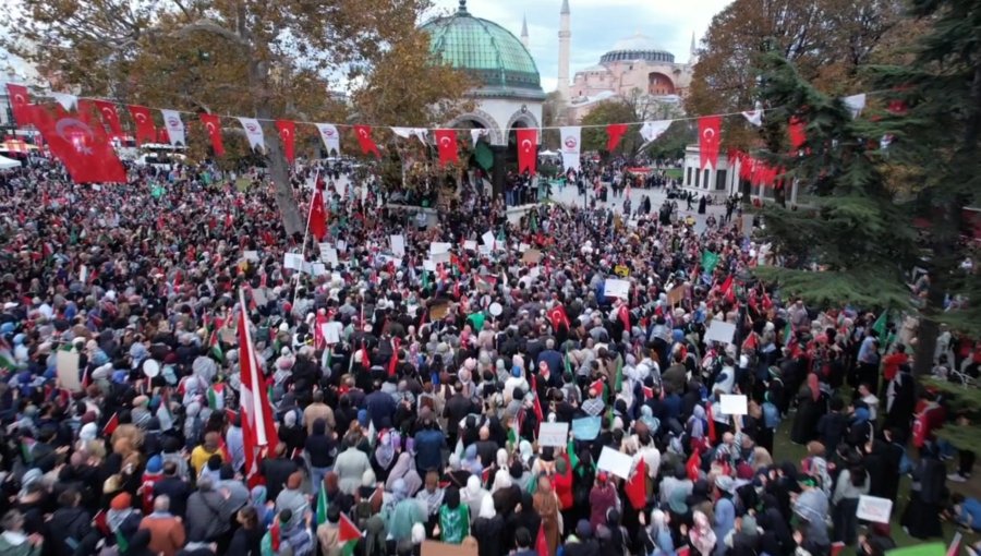 İsrail'in Gazze'ye saldırılarına tepki göstermek amacıyla "Soykırıma Dur de, El Ele Gazze Şeridi" etkinliği düzenlendi. Yaklaşık 7 kilometre boyunca yürüyen binlerce kişi, İsrail'in katliamlarını protesto ederek, pankartlar ile Türk ve Filistin bayrakları taşıdı. Grup sık sık sloganlar attı. Edirnekapı’dan Sultanahmet Meydanı'na kadar gerçekleşen yürüyüş havadan dronla da görüntülendi. Saat 15.00’de Fevzipaşa Caddesi'nde başlayan yürüyüş, Sultanahmet’te sona erdi. Binlerce kişi Filistin’de katledilen insanlar için dua etti. Dua sonrasında grup sessizce dağıldı.