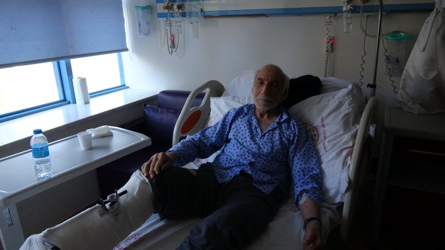 Bir diğer depremzede Hataylı Abdullah Nuri Tepeleyici ise enkaz altında kalıp bacağı kırıldığı için tedavi altına alındı. Torunu tarafından enkaz altından çıkarılan Tepeleyici, "Saat 12'ye kadar oturdum, sonra uyudum. Ufak bir sallantı olduğunu hissettim. Bina bir anda alt üst oldu. Ben kendim sürünerek avluya kadar ilerleyebildim. 5-10 dakika sonra çocuklar geldi, iki üç arkadaşla beraber beni çıkarttılar. Komşuya gittik. Daha sonra jandarma geldi. Bizi Altınözü Devlet Hastanesine yatırdılar. Orada bacağımı sarıp alçıya aldılar. Oradan da futbol sahasına götürdüler. Futbol sahasından helikopter ile Adana’ya sevk ettiler. 2 gece Adana’da hastanede kaldık. Orada acil hastalara yer açabilmek için bizi Burdur’a gönderdiler. 2 katlı evimiz vardı Hatay’da. Bir kedim vardı, o da öldü mü kaldı mı bilmiyorum. Hastaneye geldiğimizde yanıma bir kedi geldi, ayağımın üzerinde uyudu, bacağımı yaladı. Onun yakınlığı biraz da olsa bana iyi geldi. Deprem anında ayağımın üzerine ne düştü bilemiyorum. Bir baktım burası kanlar içinde kalmıştı" diyerek yaşadıklarını anlattı.
