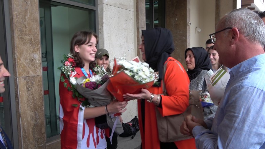 Milli formayla dünya şampiyonu olan Rizeli Kick Boks sporcusu Cemren Temizel, havalimanında çiçeklerle karşılandı.