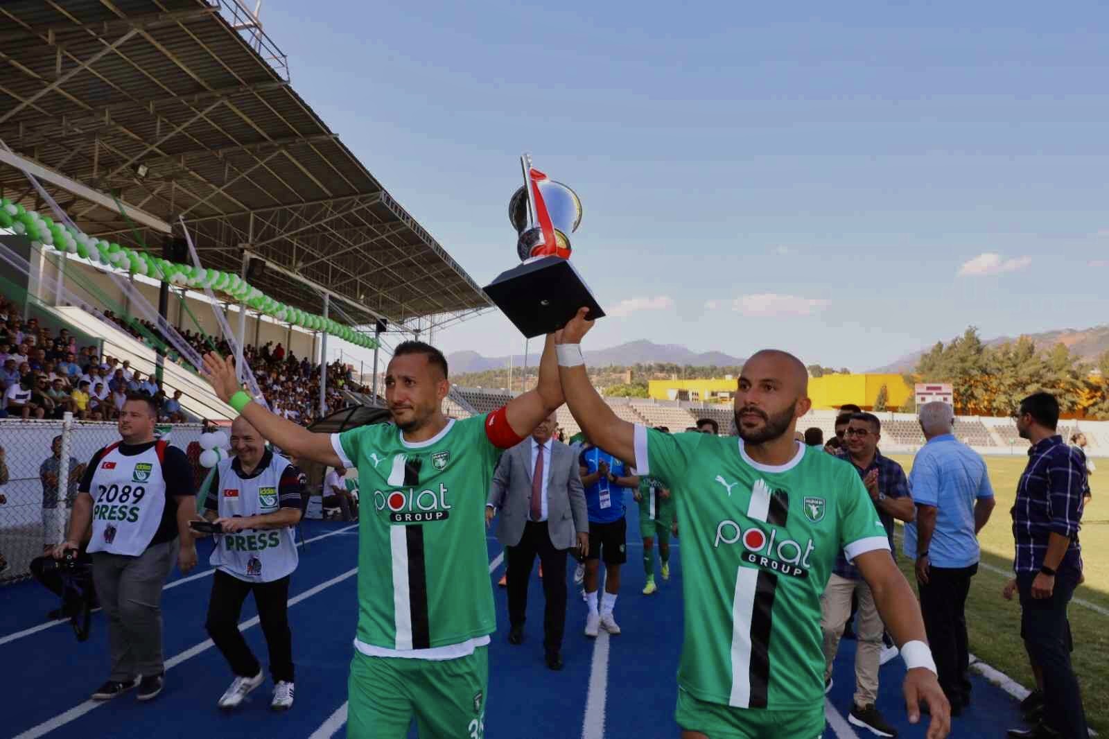 Kupayı kaldıran Yeşil beyazlı yöneticiler ve oyuncular şampiyonluk kupasıyla tribünleri selamladı.