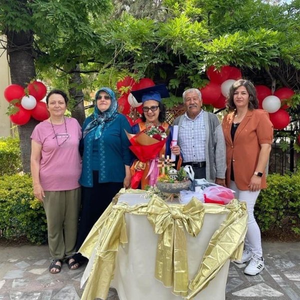Eğitim süreci boyunca doğal liflerden örgü teknikleri, boyama, takı tasarımı vb. gibi birçok kursta başarılı olan Emine Balcı mezun olmayı başardı. Milli Eğitim Müdürü Mustafa Gül'ün diplomasını, Şube Müdürü Bilal Dal'ın da çiçek takdim ettiği Balcı, mezun olmanın mutluluğunu kepini havaya atarak kutladı.