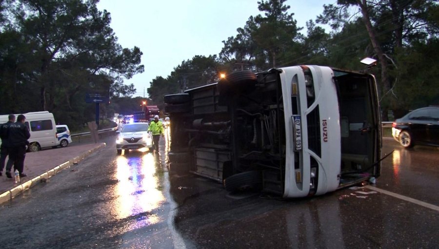 Kaza, saat 18.30 sıralarında Kepez İlçesi D650 Karayolu’nda meydana geldi. Edinilen bilgiye göre, Döşemealtı ilçesi Organize Sanayi Bölgesi’ndeki mobilya fabrikasındaki personelleri taşıyan Oktay T. (46) hakimiyetindeki 07 APA 093 plakalı servis midibüsü, yağıştan dolayı kayganlaşan yolda sürücüsünün direksiyon hakimiyetini kaybetmesi sonucu yan yattı. Kazayı görenlerin haber vermesi üzerine olay yerine itfaiye, polis ve sağlık ekipleri sevk edildi. Kazada yaralanan 7 kişi, olay yerine gelen ambulanslarla tedavi için hastaneye kaldırıldı. Yaralıların hayati tehlikesinin bulunmadığı öğrenildi.