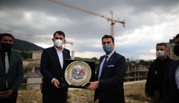 Osmangazi Belediye Başkanı Mustafa Dündar, Bakan Kurum’a günün anısına bir plaket takdim etti.