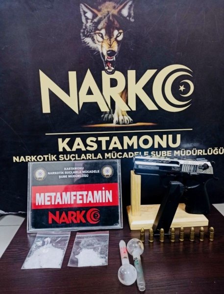 Edinilen bilgiye göre, Kastamonu İl Emniyet Müdürlüğü Narkotik Suçlarla Şube Müdürlüğü ekipleri tarafından, uyuşturucu ve uyarıcı madde kullanan şahıslara yönelik yapılan çalışmalar sırasında, içerisindeki şahısların durumundan şüphelenerek bir araç durduruldu. Araçta ve şahısların üzerinde yapılan aramalarda bir miktar metamfetamin, sentetik ecza hapı, uyuşturucu kullanımında kullanılan cam düzenek, ruhsatsız tabanca ve tabancaya ait fişekler ele geçirildi.