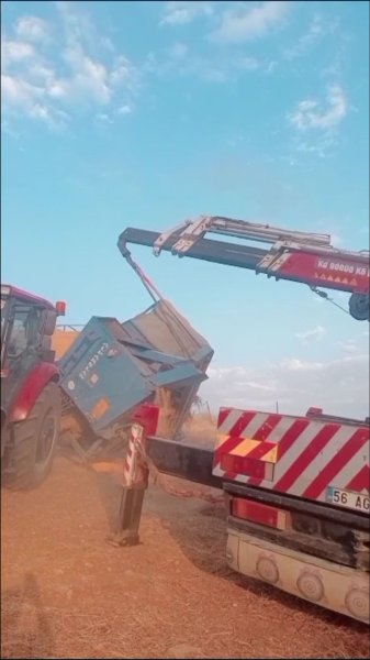 Alınan bilgilere göre, Siirt’in Yağmurtepe köyünde buğday hasadı sırasında traktörün römorkuna buğday boşaltıldığı esnada römork devrildi. Buğdayın bir kısmı tarlaya savrulurken, o esnada olay yerinde bulunan bir çocuk, römorkun altında kalmaktan son anda kurtuldu.
