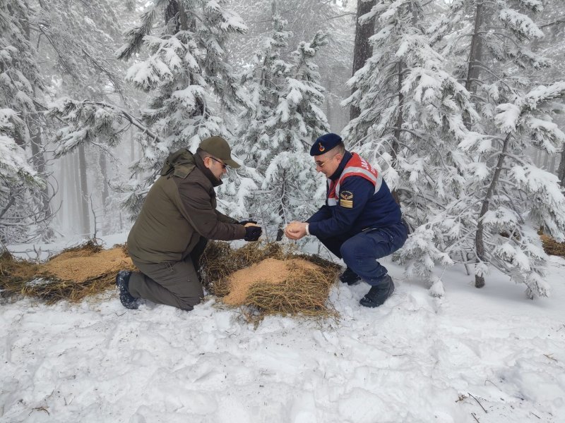 Karla kaplı Kazdaağları'nda yaban hayvanları için yem bıraktılar