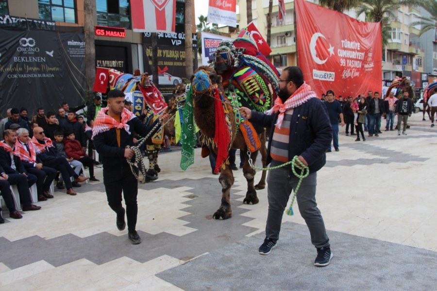 Antalya’nın Kumluca ilçesinde yaşanan sel felaketinin ardından yaraların sarılmasıyla moral bulmaya çalışan ilçe halkı folklorik deve güreşlerine hazırlanıyor. Deve güreşleri gösterileri öncesi ilçenin meydanında “En Süslü Deve Yarışması” düzenlendi.